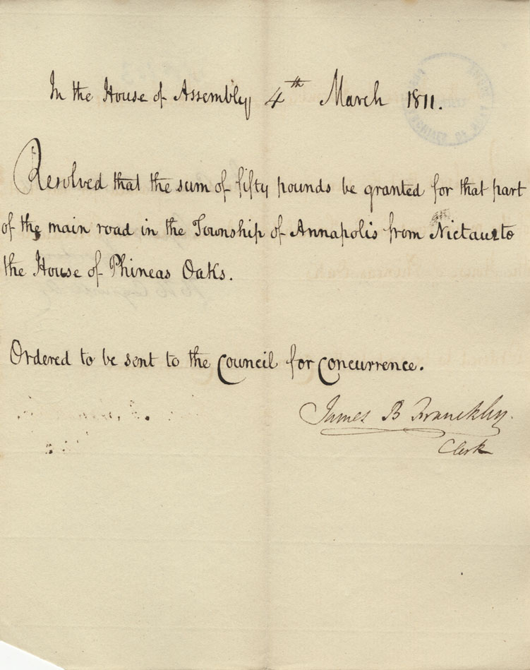 Reference: Nova Scotia House of Assembly Nova Scotia Archives RG 5 Series A volume 17 number 49