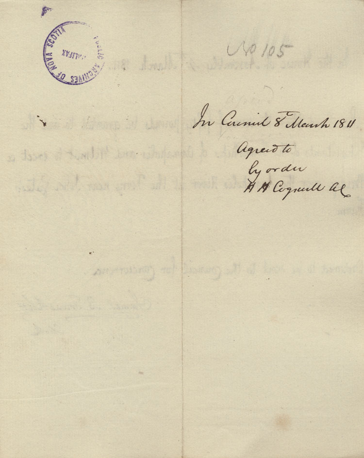 Reference: Nova Scotia House of Assembly Nova Scotia Archives RG 5 Series A volume 17 number 49