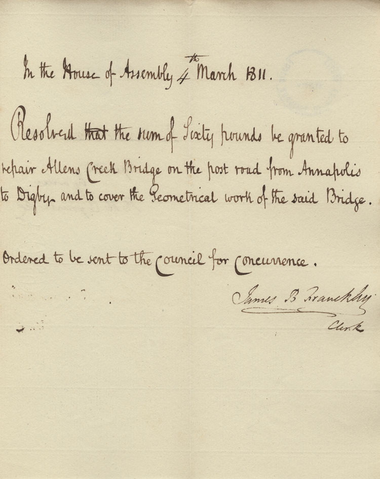 Reference: Nova Scotia House of Assembly Nova Scotia Archives RG 5 Series A volume 17 number 49