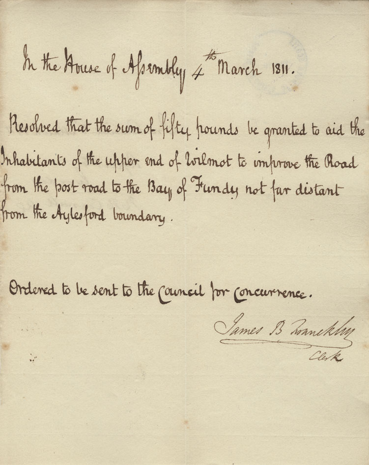Reference: Nova Scotia House of Assembly Nova Scotia Archives RG 5 Series A volume 17 number 49