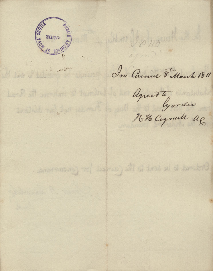 Reference: Nova Scotia House of Assembly Nova Scotia Archives RG 5 Series A volume 17 number 49