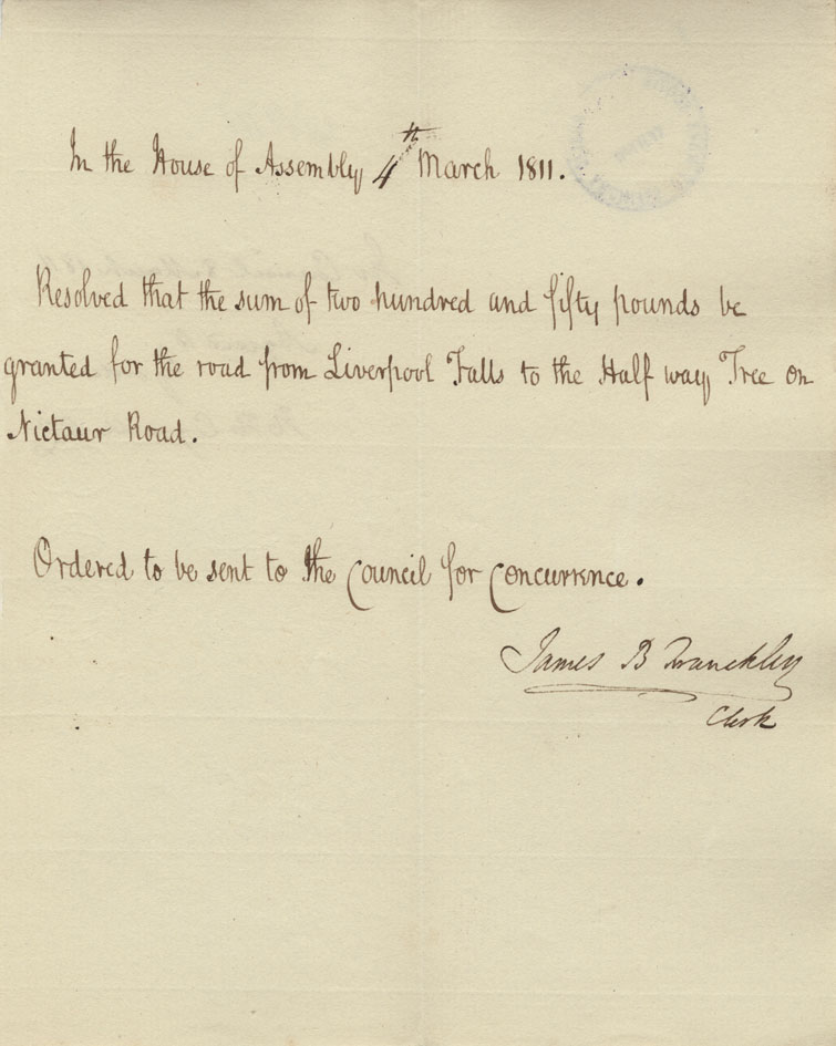 Reference: Nova Scotia House of Assembly Nova Scotia Archives RG 5 Series A volume 17 number 49