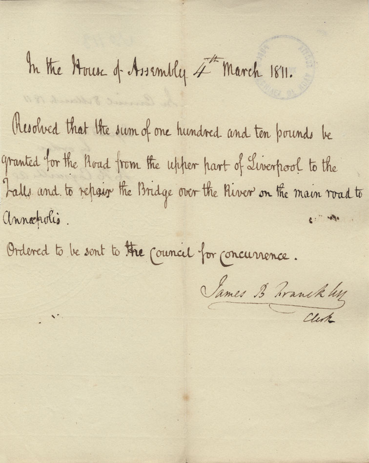 Reference: Nova Scotia House of Assembly Nova Scotia Archives RG 5 Series A volume 17 number 49