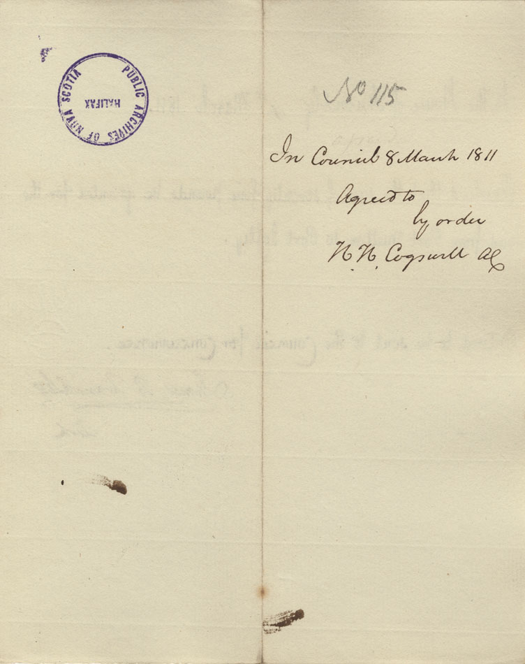 Reference: Nova Scotia House of Assembly Nova Scotia Archives RG 5 Series A volume 17 number 49