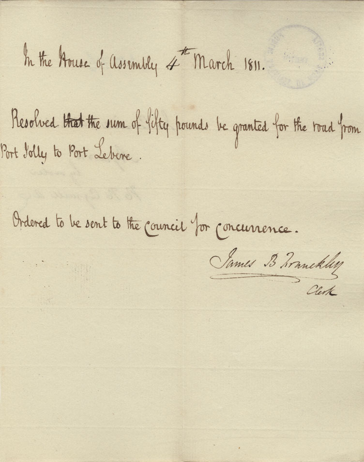 Reference: Nova Scotia House of Assembly Nova Scotia Archives RG 5 Series A volume 17 number 49