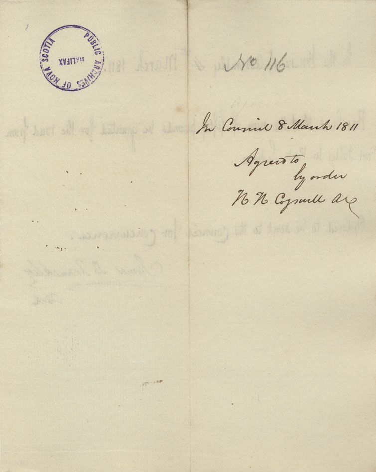 Reference: Nova Scotia House of Assembly Nova Scotia Archives RG 5 Series A volume 17 number 49