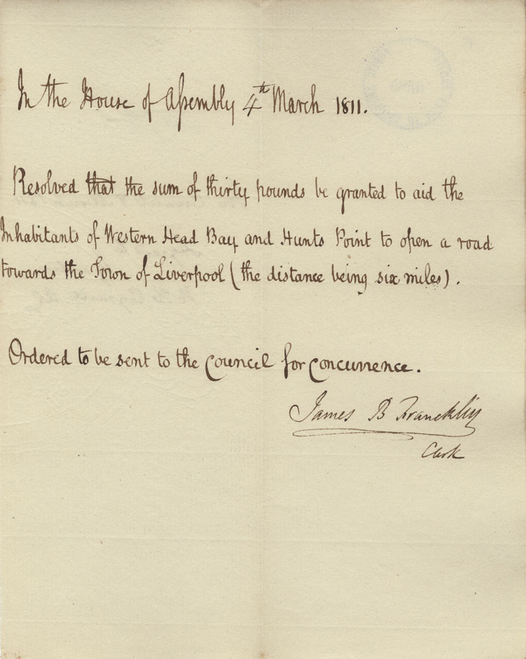 Reference: Nova Scotia House of Assembly Nova Scotia Archives RG 5 Series A volume 17 number 49