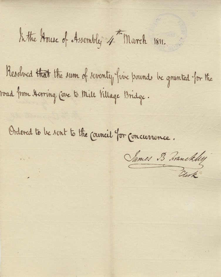 Reference: Nova Scotia House of Assembly Nova Scotia Archives RG 5 Series A volume 17 number 49