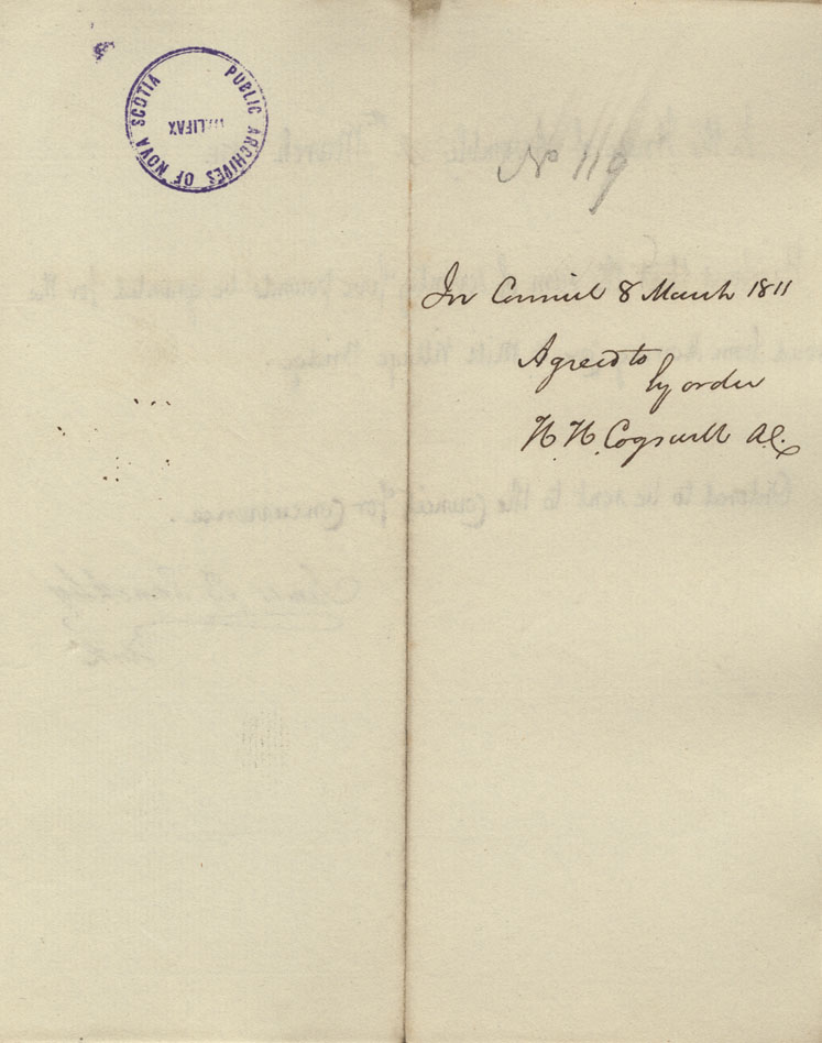 Reference: Nova Scotia House of Assembly Nova Scotia Archives RG 5 Series A volume 17 number 49