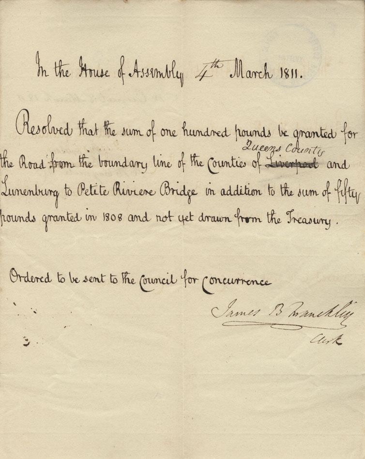 Reference: Nova Scotia House of Assembly Nova Scotia Archives RG 5 Series A volume 17 number 49