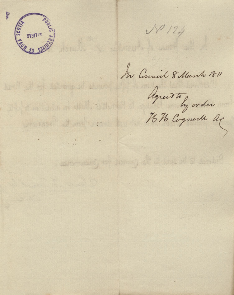 Reference: Nova Scotia House of Assembly Nova Scotia Archives RG 5 Series A volume 17 number 49
