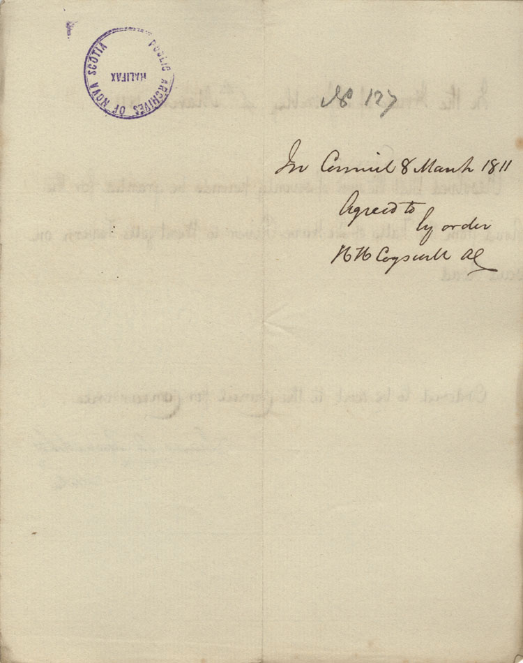 Reference: Nova Scotia House of Assembly Nova Scotia Archives RG 5 Series A volume 17 number 49