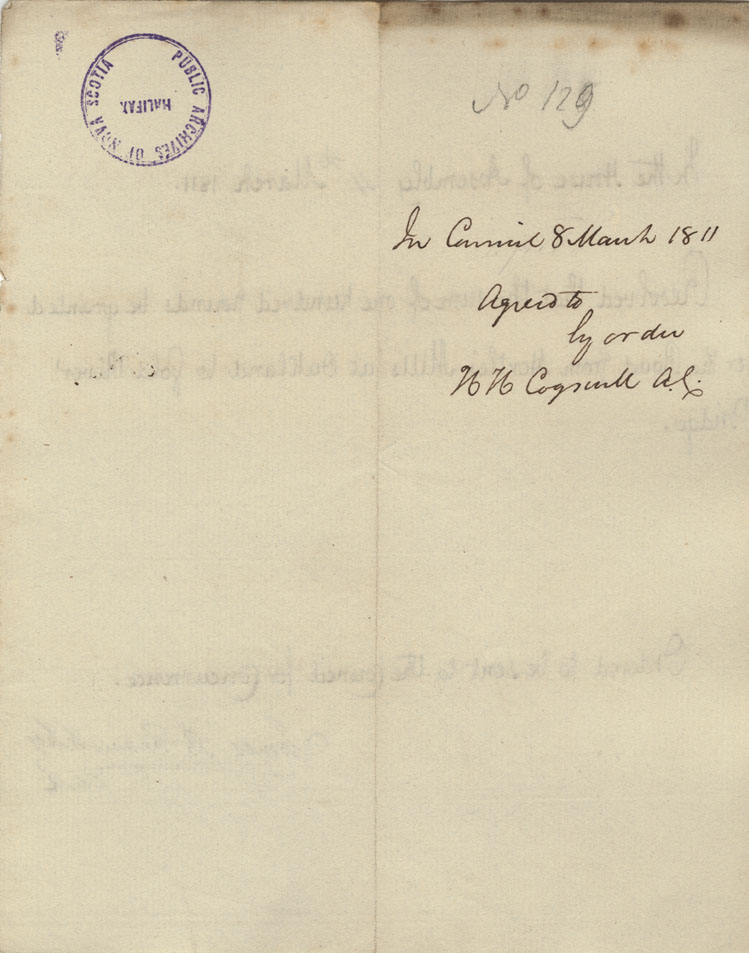Reference: Nova Scotia House of Assembly Nova Scotia Archives RG 5 Series A volume 17 number 49