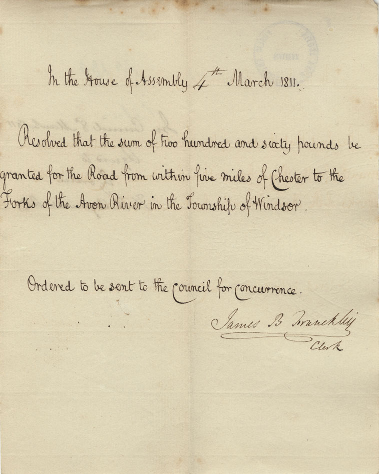 Reference: Nova Scotia House of Assembly Nova Scotia Archives RG 5 Series A volume 17 number 49