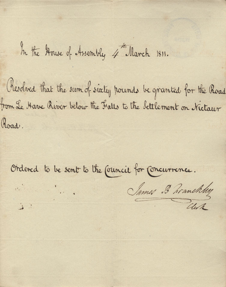 Reference: Nova Scotia House of Assembly Nova Scotia Archives RG 5 Series A volume 17 number 49