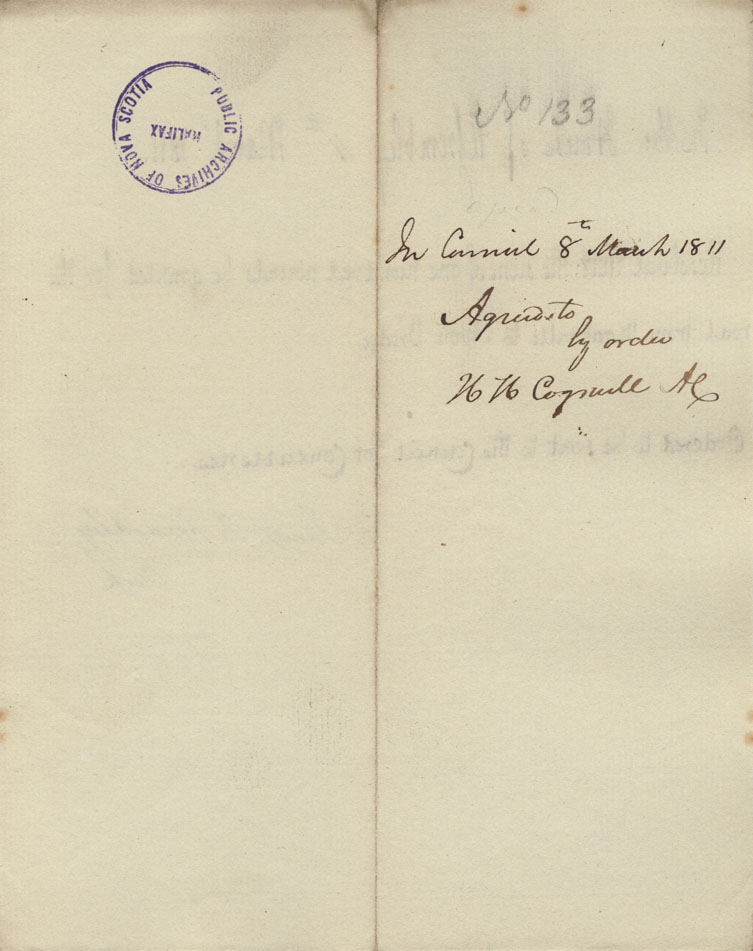 Reference: Nova Scotia House of Assembly Nova Scotia Archives RG 5 Series A volume 17 number 49