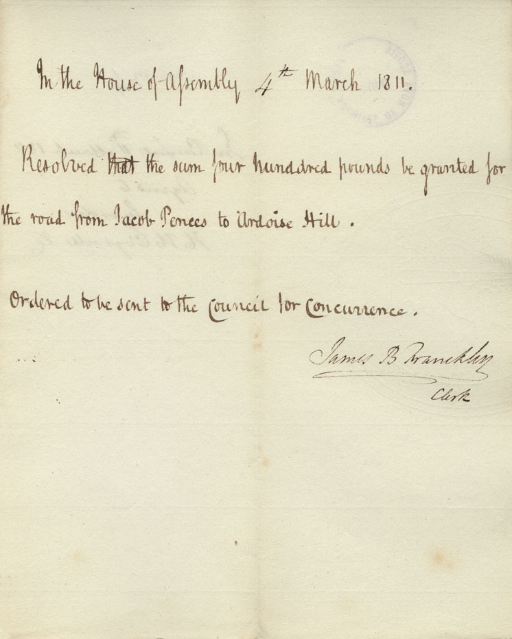 Reference: Nova Scotia House of Assembly Nova Scotia Archives RG 5 Series A volume 17 number 49