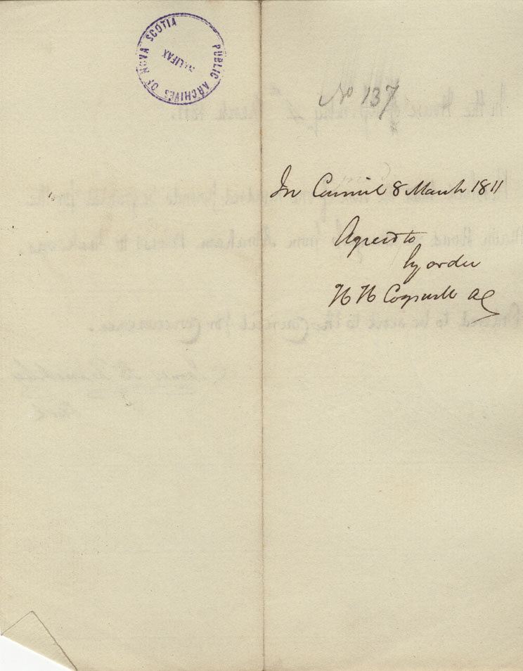 Reference: Nova Scotia House of Assembly Nova Scotia Archives RG 5 Series A volume 17 number 49