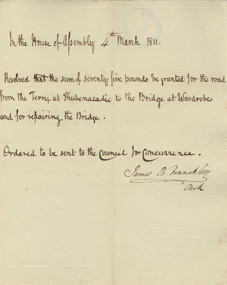 Reference: Nova Scotia House of Assembly Nova Scotia Archives RG 5 Series A volume 17 number 49