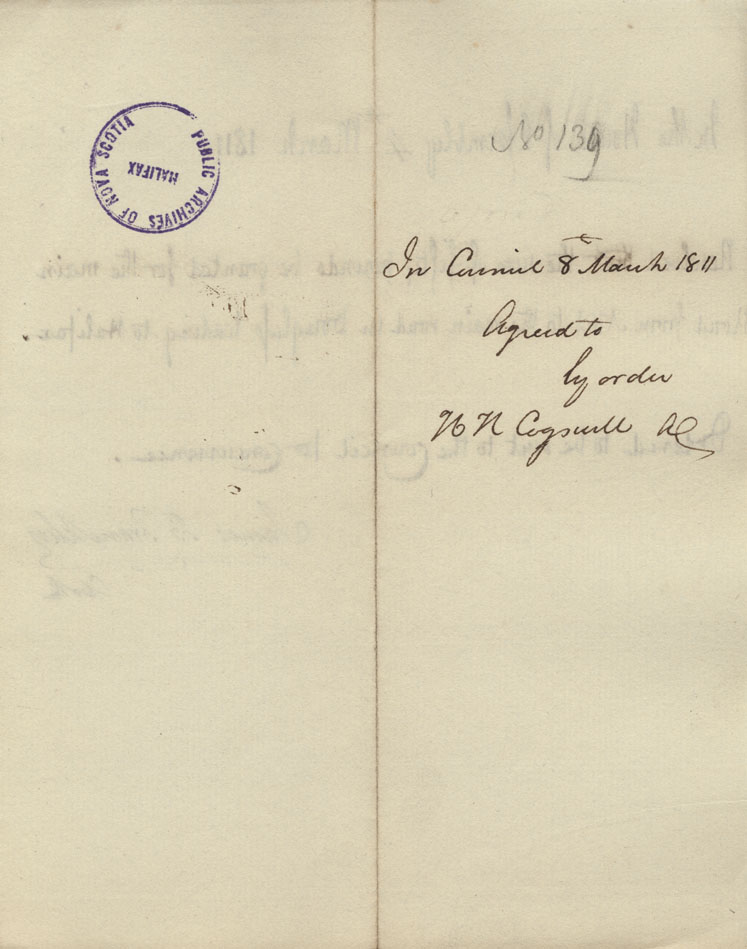 Reference: Nova Scotia House of Assembly Nova Scotia Archives RG 5 Series A volume 17 number 49