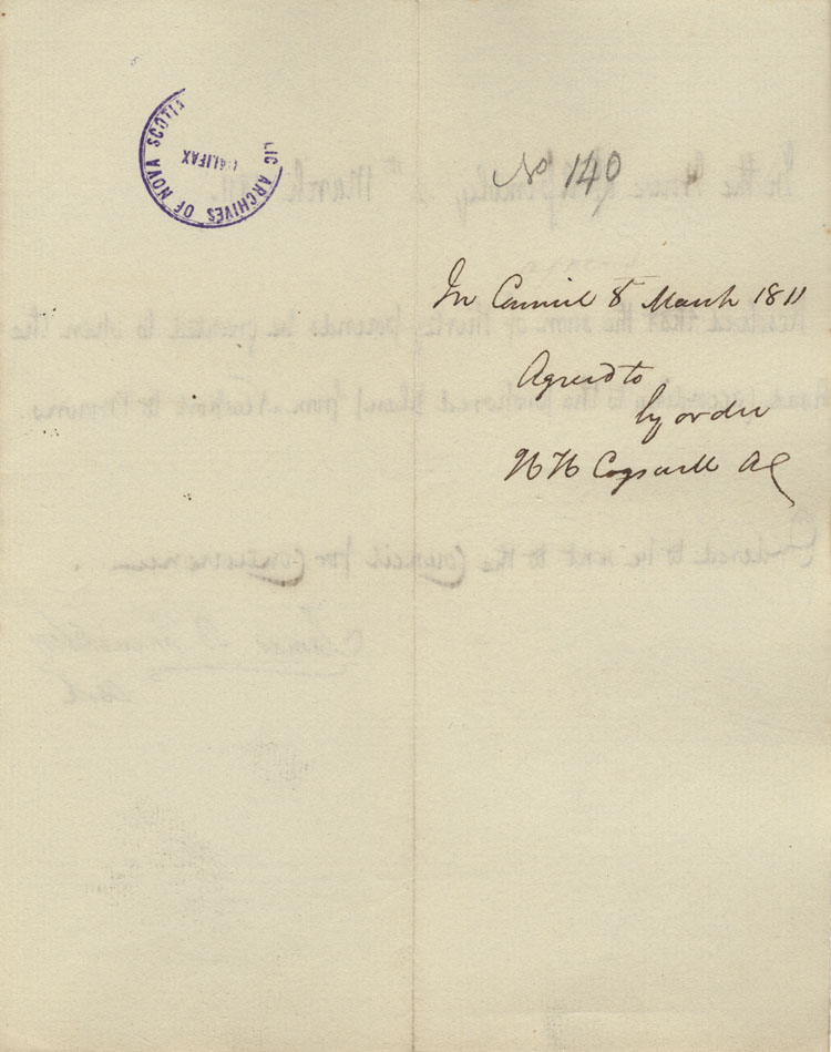Reference: Nova Scotia House of Assembly Nova Scotia Archives RG 5 Series A volume 17 number 49