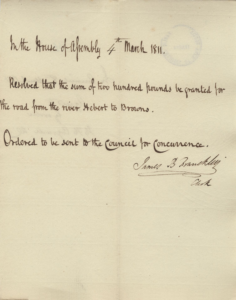 Reference: Nova Scotia House of Assembly Nova Scotia Archives RG 5 Series A volume 17 number 49
