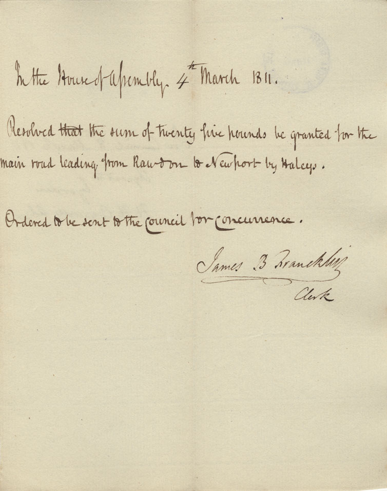 Reference: Nova Scotia House of Assembly Nova Scotia Archives RG 5 Series A volume 17 number 49