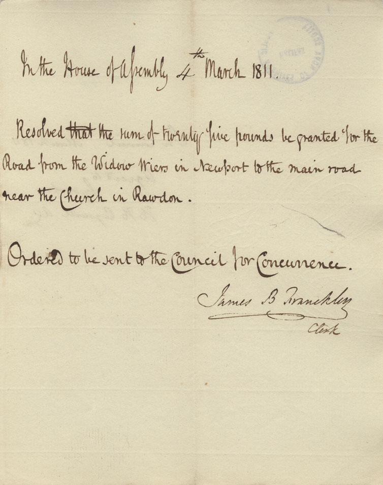 Reference: Nova Scotia House of Assembly Nova Scotia Archives RG 5 Series A volume 17 number 49