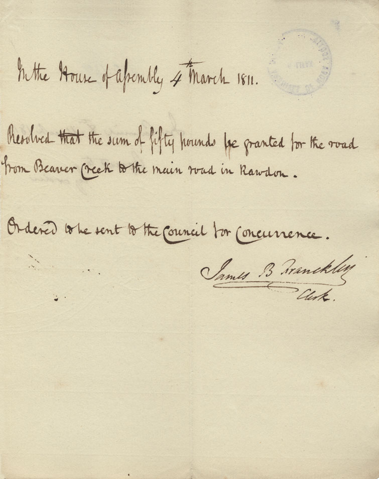 Reference: Nova Scotia House of Assembly Nova Scotia Archives RG 5 Series A volume 17 number 49