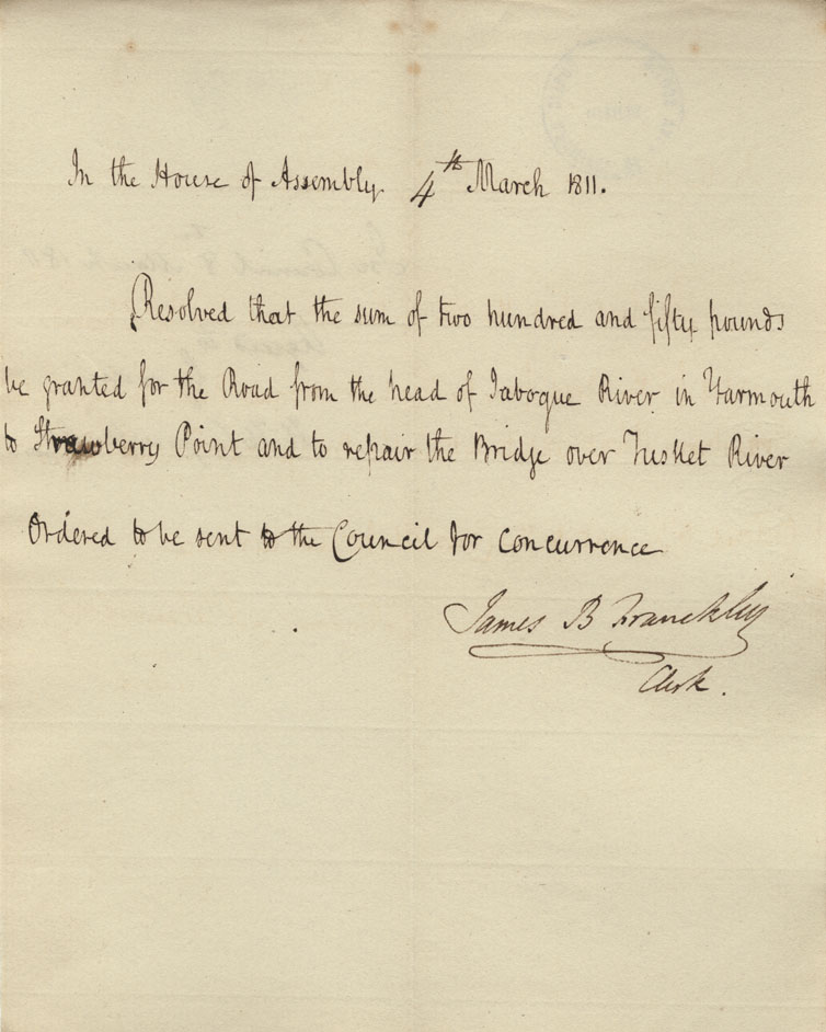 Reference: Nova Scotia House of Assembly Nova Scotia Archives RG 5 Series A volume 17 number 49