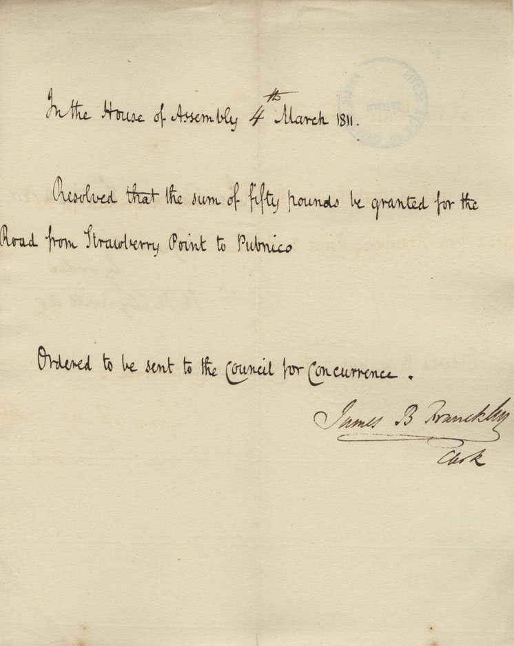 Reference: Nova Scotia House of Assembly Nova Scotia Archives RG 5 Series A volume 17 number 49