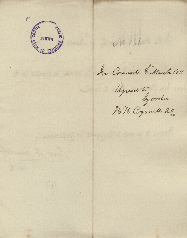 Reference: Nova Scotia House of Assembly Nova Scotia Archives RG 5 Series A volume 17 number 49