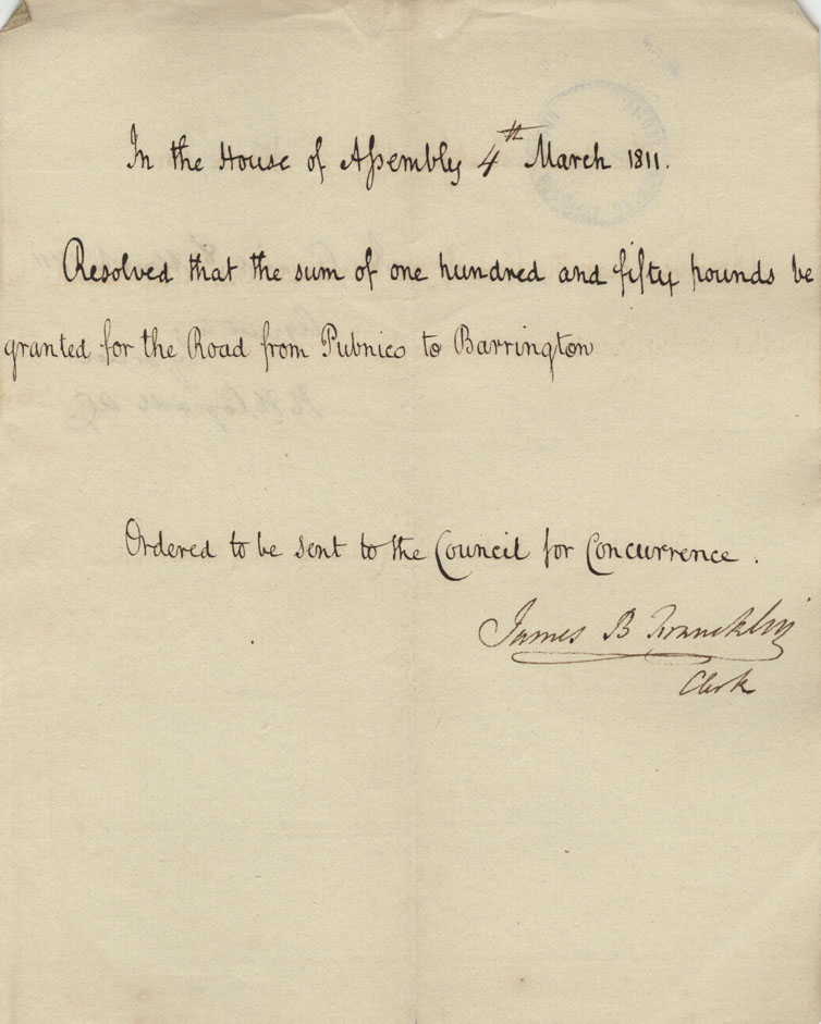 Reference: Nova Scotia House of Assembly Nova Scotia Archives RG 5 Series A volume 17 number 49