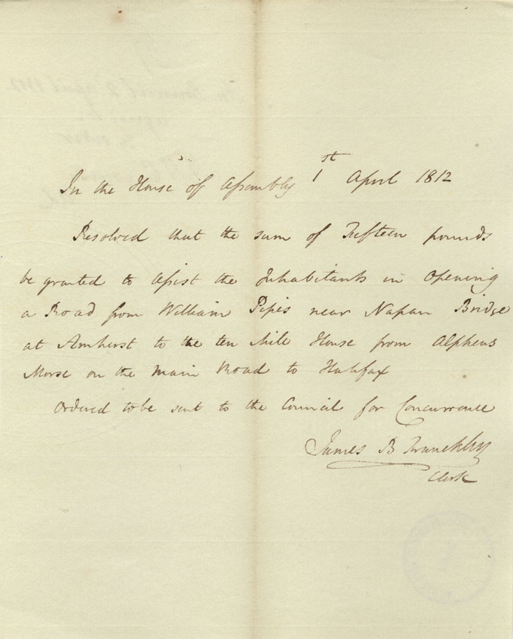 Reference: Nova Scotia House of Assembly Nova Scotia Archives RG 5 Series A volume 18 number 104