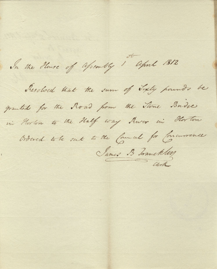 Reference: Nova Scotia House of Assembly Nova Scotia Archives RG 5 Series A volume 18 number 104