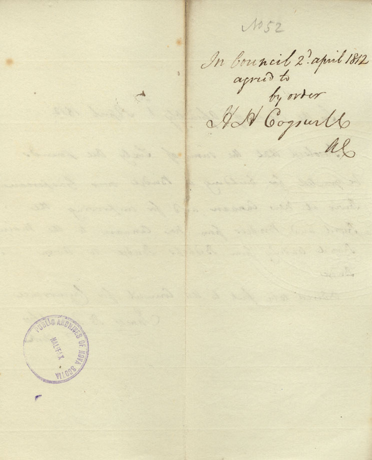 Reference: Nova Scotia House of Assembly Nova Scotia Archives RG 5 Series A volume 18 number 104