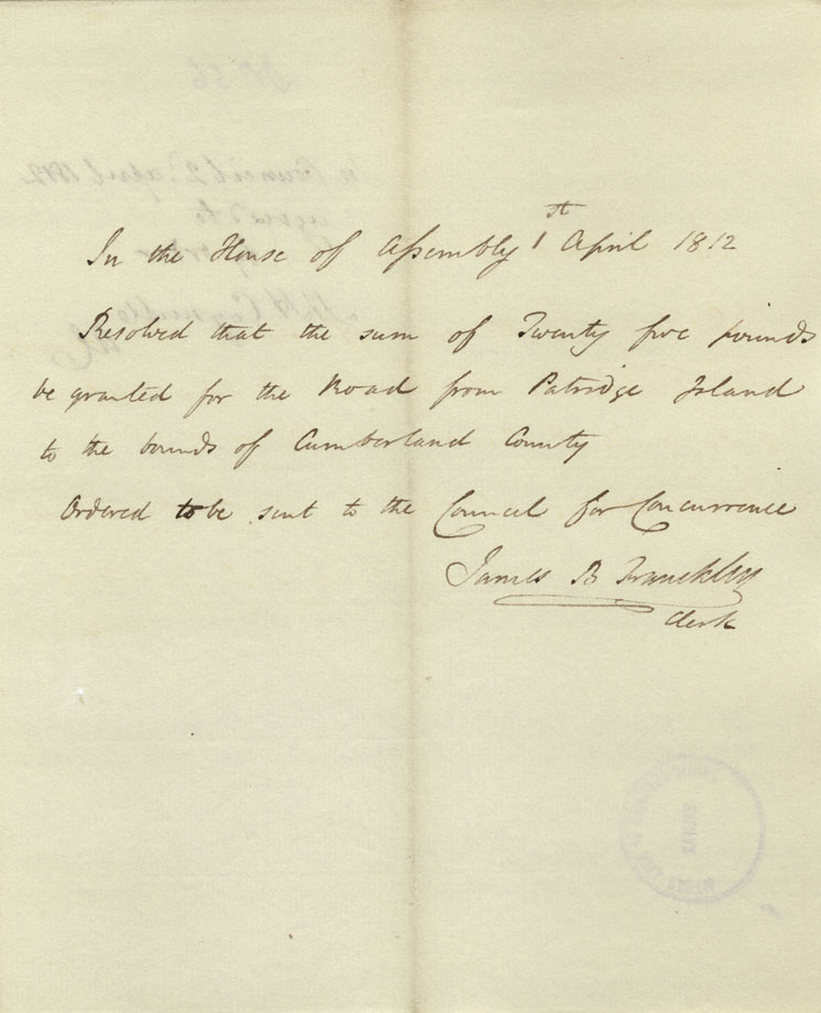 Reference: Nova Scotia House of Assembly Nova Scotia Archives RG 5 Series A volume 18 number 104