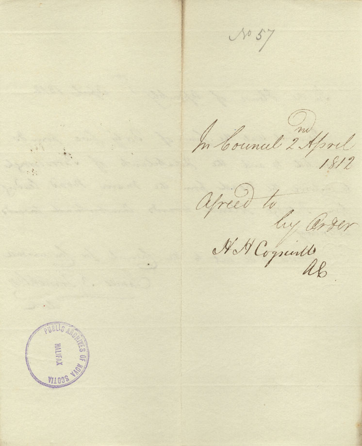 Reference: Nova Scotia House of Assembly Nova Scotia Archives RG 5 Series A volume 18 number 104