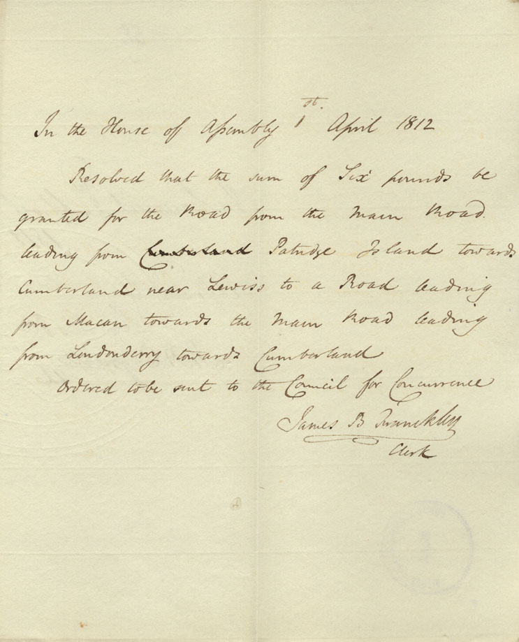 Reference: Nova Scotia House of Assembly Nova Scotia Archives RG 5 Series A volume 18 number 104