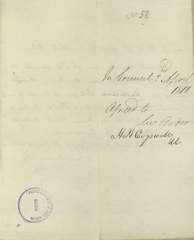 Reference: Nova Scotia House of Assembly Nova Scotia Archives RG 5 Series A volume 18 number 104