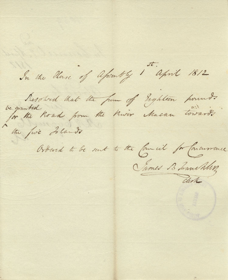 Reference: Nova Scotia House of Assembly Nova Scotia Archives RG 5 Series A volume 18 number 104