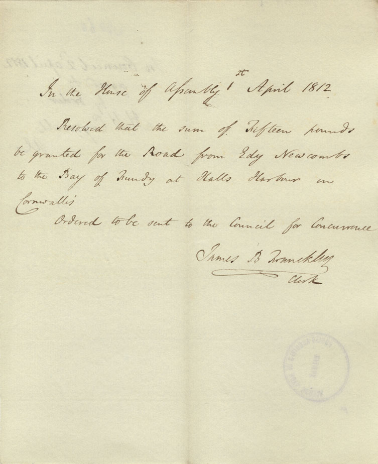 Reference: Nova Scotia House of Assembly Nova Scotia Archives RG 5 Series A volume 18 number 104