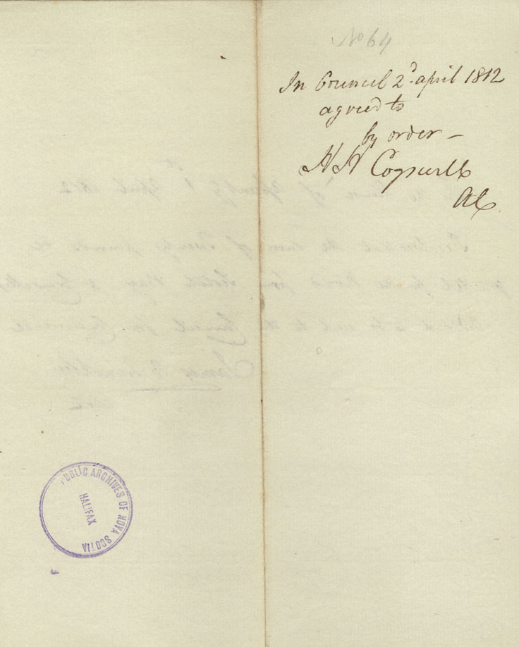 Reference: Nova Scotia House of Assembly Nova Scotia Archives RG 5 Series A volume 18 number 104