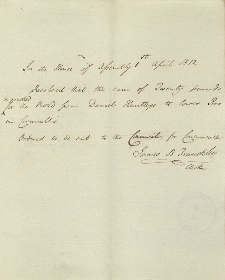 Reference: Nova Scotia House of Assembly Nova Scotia Archives RG 5 Series A volume 18 number 104