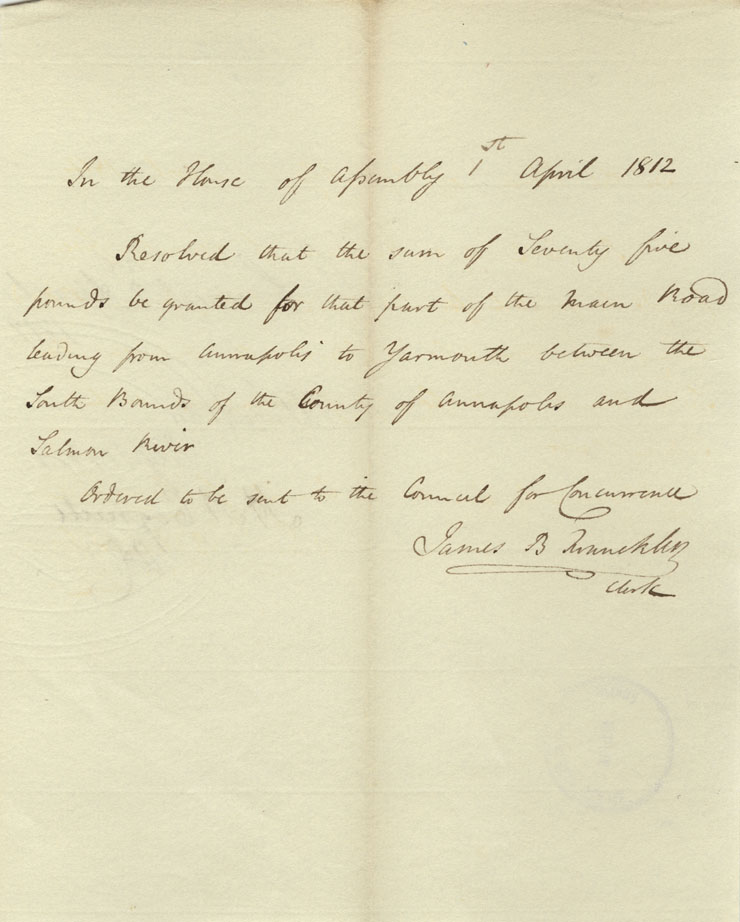 Reference: Nova Scotia House of Assembly Nova Scotia Archives RG 5 Series A volume 18 number 104