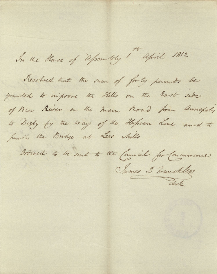 Reference: Nova Scotia House of Assembly Nova Scotia Archives RG 5 Series A volume 18 number 104