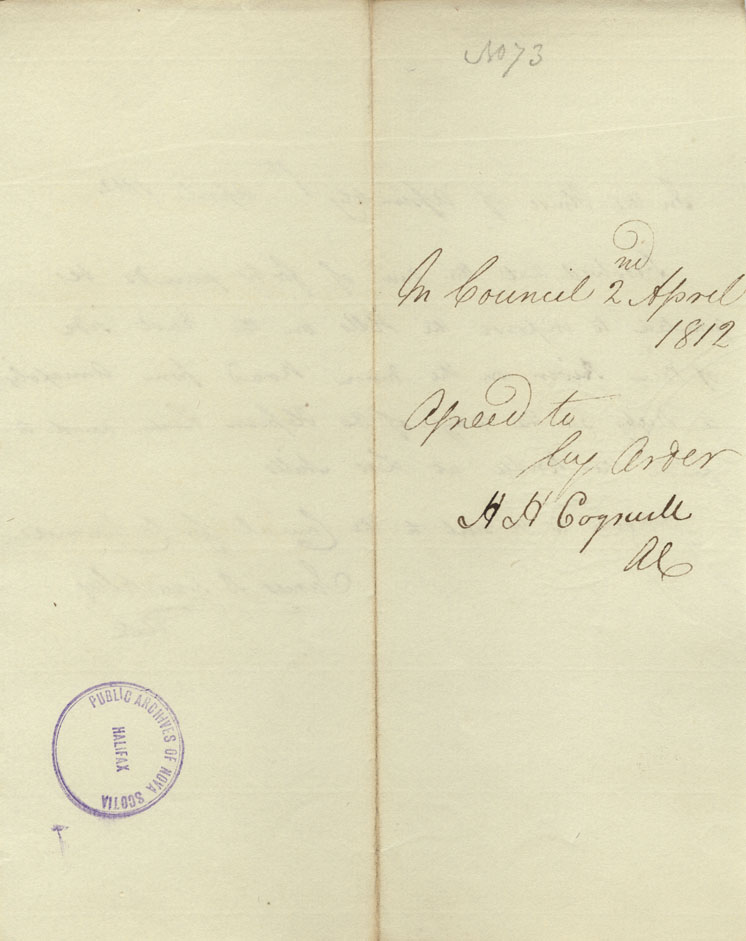 Reference: Nova Scotia House of Assembly Nova Scotia Archives RG 5 Series A volume 18 number 104