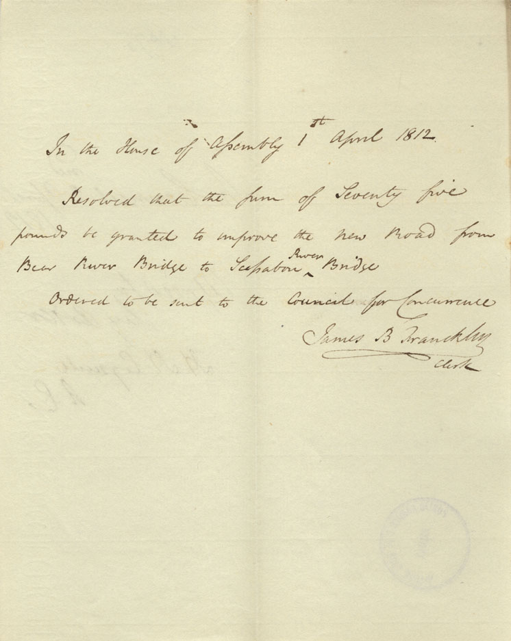 Reference: Nova Scotia House of Assembly Nova Scotia Archives RG 5 Series A volume 18 number 104