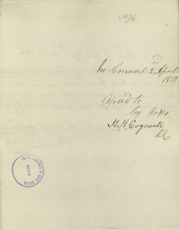 Reference: Nova Scotia House of Assembly Nova Scotia Archives RG 5 Series A volume 18 number 104