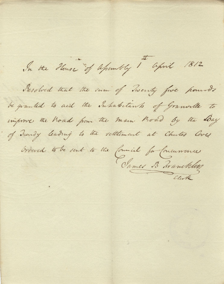 Reference: Nova Scotia House of Assembly Nova Scotia Archives RG 5 Series A volume 18 number 104